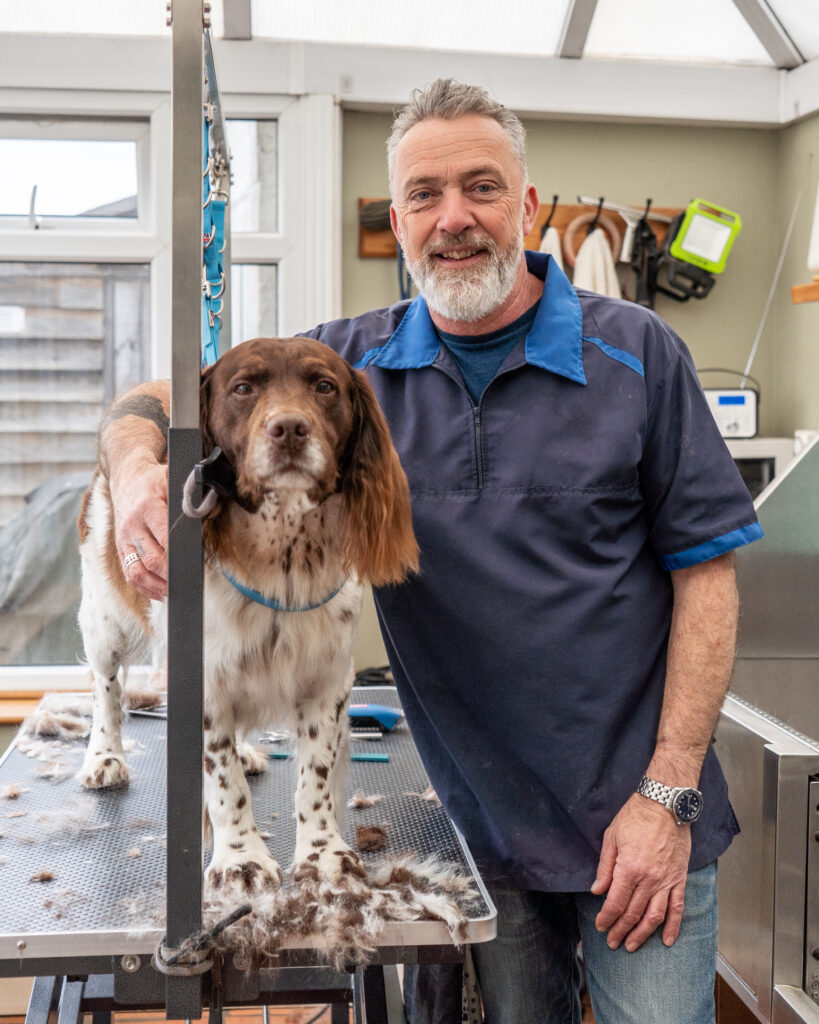 The Sussex Dog Groomer in Netherfield, is a quiet home salon run by Mark who is pictured here grooming his spaniel. Mark is passionate about providing a kind and sympathetic grooming experience for dogs in a one to one environment. Qualified with City and Guilds to Level 3 in Dog Grooming and Level 3 OCN Pet First Aid, Mark is a trusted local expert providing high quality grooming services for dogs.