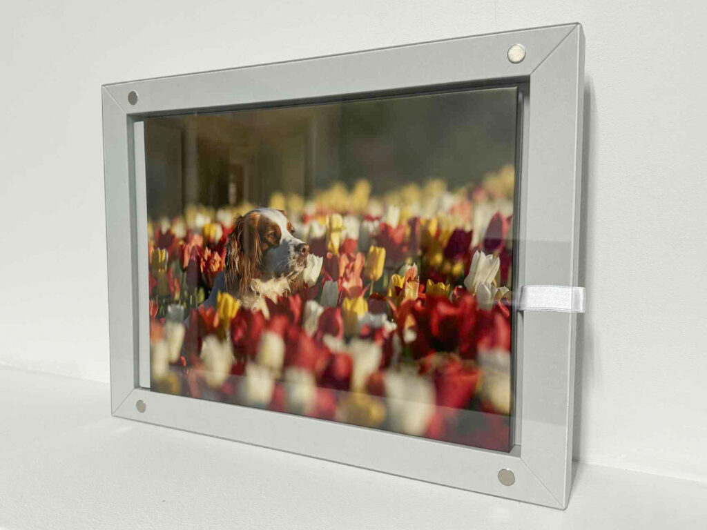 The Elegant Collection features three large statement pieces (known as the floating frame). Available in eight colour finishes to suit the style of your home. The Floating Frame is a beautiful acrylic print surrounded by a deep frame, giving the effect of a ‘floating’ photograph.