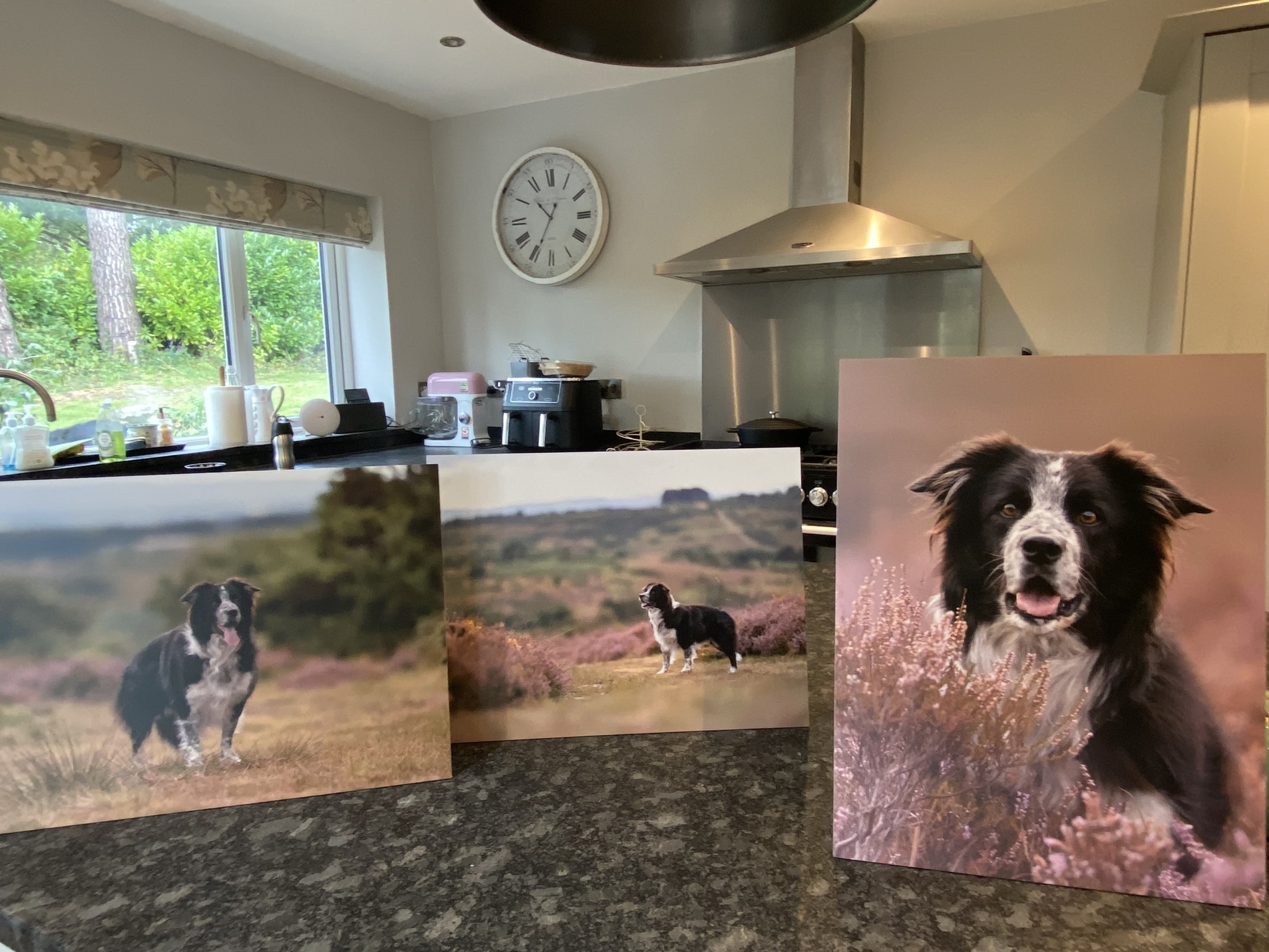 Sweep’s family came to their gallery viewing excited to see the results and were very happy with the portraits created. After narrowing down to their favourites and browsing the print and wall art samples, they chose three board mounted prints to display in their home. It was also fantastic news to hear that Sweep had not had any more seizures since before his photo session.